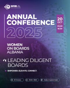 Women on Boards Albania (WOB-AL) është një organizatë kombëtare, e themeluar për të fuqizuar përfaqësimin e grave në bordet drejtuese dhe për të përmirësuar standardet e qeverisjes korporative në Shqipëri. E drejtuar nga Albana Vrioni, WOB-AL është pjesë e rrjetit European Women on Boards dhe bashkëpunon ngushtë me liderë të biznesit, institucione dhe ekspertë ndërkombëtarë. Misioni i saj është të krijojë një ekosistem gjithëpërfshirës, ku bordet janë më të balancuara, vendimmarrja më e përgjegjshme dhe lidershipi më vizionar, duke kontribuar drejtpërdrejt në zhvillimin ekonomik dhe shoqëror të vendit.