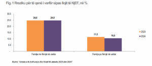 Në vitin 2024, përqindja e individëve në rrezik për të qenë të varfër, në NjEF pa fëmijë në varësi, vlerësohet të jetë më e ulët, krahasuar me NjEF me fëmijë në varësi.
