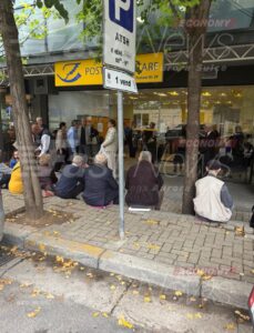 Sic duket edhe nga fotot e siguruara nga Fast News Economy, shumë prej tyre presin jashtë zyrave të Postës, të mbushura plot në ambientet e brendshme. Disa të ulur në trotuar prej orësh, në pritje që t’iu vijë rradha.