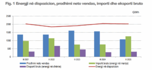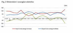 Importi bruto i energjisë elektrike (energji në marrje), në tremujorin e tretë të vitit 2025, arriti vlerën 1.260 GWh, nga 762 GWh që ishte në të njëjtën periudhë të një viti më parë, duke shënuar një rritje prej 65,3 %. Eksporti bruto i energjisë elektrike (energji në dhënie) arriti 312 GWh, nga 282 GWh, duke shënuar një rritje prej 10,8 %
