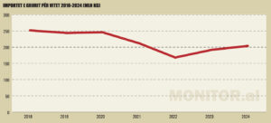 Sipas të dhënave të INSTAT për 2024, importet u rritën me 16% në raport me 2023. Për janar – shtator 2025, importet e grupit u rritën me 1% krahasuar me të njëjtën periudhë të 2024.