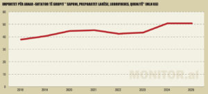 Importet e grupit “Vajra dhe dhjamëra kafshore apo vegjetale” për 2025 vijuan të ndjekin tendencën rritëse të vitit të kaluar.
