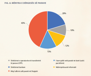 Migrantët kanë tendencë të dërgojnë remitanca përmes kanaleve informale, kryesisht nëpërmjet miqve ose kur vizitojnë vetë Shqipërinë, ndërsa kanalet formale, siç janë bankat dhe operatorët e transferimit të parave përdoren si metodë kryesore në vetëm 30 përqind të rasteve”, vlerëson INSTAT.