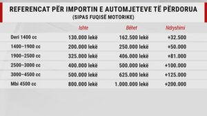 Me automjetet e njërës prej këtyre kategorive me peshë deri në 1.5 tonë, çmimi minimal që do të deklarohet në doganë rritet në 500 mijë lekë nga 400 mijë që ishte.