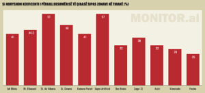 Ndërsa për zona si ish-Blloku, Komuna e Parisit, Liqeni Artificial, Rruga e Elbasanit apo stadiumi “Air Albania”, koeficienti i përballueshmërisë llogaritet mbi 40%.