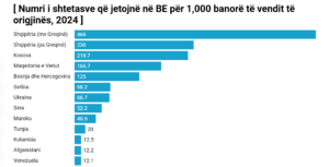 Nëse krahasohet me madhësinë e popullsisë, vendi ynë kryeson listën në Europë, në një tregues të përmasave të mëdha të emigracionit.