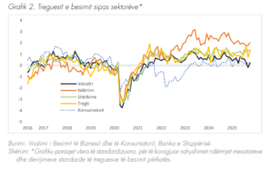 Viti 2025 u mbyll me biznese pesimiste. Kjo pavarësisht rritjes ekonomike në nivelet mbi 3.5%. Treguesi i ndjesisë ekonomike, që publikohet në mënyrë periodike nga Banka e Shqipërisë, ra me 0.4 pikë në muajin dhjetor. Kjo rënia u ndikua kryesisht nga dobësimi i treguesve në sektorët e shërbimeve dhe të industrisë. Treguesi i besimit në sektorin e tregtisë dhe ai i besimit të konsumatorit mbetën pothuajse të pandryshuar. Rritje regjistroi treguesi i besimit në sektorin e ndërtimit.