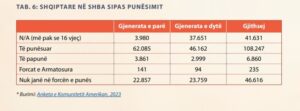 Përsa i përket karakteristikave të tyre ekonomike dhe specifikisht statusit në punësim, të dy gjeneratat kanë norma shumë të larta të punësimit. Shqiptarët e papunë në SHBA në 2023 zënë vetëm 3,3 %, kurse 22,6 % nuk bëjnë pjesë në forcën e punës dhe 20,2 % janë më pak se 16 vjeç.