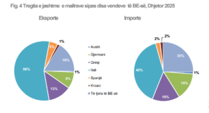 Gjeografika e shkëmbimeve tregtare të Shqipërisë me vendet e tjera ka ndryshuar. Të dhënat e fundit të Institutit të Statistikave tregojnë se gjatë vitit 2025 vendet me të cilët kemi pasur uljen më të madhe të eksporteve, në krahasim me një vit më parë, janë: Italia (10,4 %), Kosova (8,6 %) dhe Maqedonia e Veriut (23,9 %).  Ndërsa vendet me të cilat eksportet kanë pasur rritjen më të madhe, janë: Greqia (7,9 %) Gjermania (1,9 %) dhe Spanja (19,9 %).