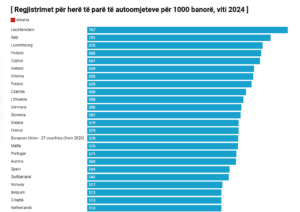 Kjo bëri që dhe raporti i numrit të automjeteve të pasagjerëve në raport me popullsisë të kërcejë në 328 mjete për 1000 banorë në vitin 2024, nga 232 që ishte ky tregues në 2022-n, para Censit. Të dhënat janë bërë publike nga Eurostat, ku raportohen të gjitha shtetet e Europës.