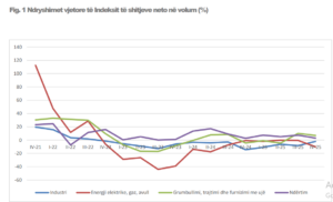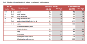 - Indeksi i prodhimit në volum shënoi rënie 0.5 %, krahasuar me të njëjtën periudhë të një viti më parë; • Indeksi i numrit të të punësuarve shënoi rënie 2.3 %, krahasuar me të njëjtën periudhë të një viti më parë;