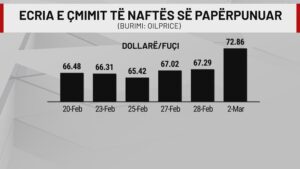 Në vetëm 48 orë nga bombardimet amerikano-izraelite në Iran, çmimet e karburanteve janë rritur me rreth 10 për qind. Nga pak më shumë se 67 dollarë për fuçi më 27 shkurt, një fuçi naftë e papërpunuar po kushton gati 73 dollarë në tregjet e huaja.