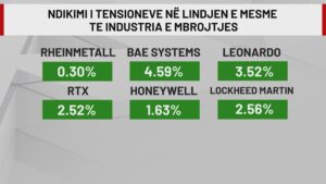 Tensionet gjithnjë e në rritje në mbarë globin kanë kthyer vëmendjen e të gjithëve te mbrojtja ushtarake. Britanikët e “BAE Systems”, amerikanët e RTX e “Honeyëell”, gjermanët e “Rheinmetall” apo italianët e “Leonardo” që do të ndihmojnë edhe Shqipërinë në rijetësimin e industrisë ushtarake kanë njohur rritje të konsiderueshme në tregje.