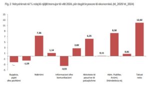 Ecuria e aktiviteteve kryesore të ekonomisë, për tremujorin e katërt të vitit 2025, krahasuar me tremujorin e katërt të vitit 2024, paraqitet si më poshtë: “Administratra Publike, Arsimi dhe Shëndetësisia” shënoi rritje prej 8,30 %, i ndjekur nga aktiviteti i “Ndërtimit” shënoi një rritje prej 7.36 %, aktiviteti “Pasuri të Paluajtshme” me një rritje prej 6.25 %, grupi “Aktivitete Financiare dhe të Sigurimit” shënoi një rritje prej 2.82%, grupi “Tregti, Transport, Akomodim dhe Shërbim ushqimor” shënoi një rritje prej 1.14 %, grupi i aktiviteteve “Arte, argëtim dhe çlodhje dhe aktivitete të tjera shërbimi” shënoi rritje prej 0.81 % dhe grupi “Aktivitete profesionale dhe Shërbime administrative” shënoi rritje me 0.11 %.