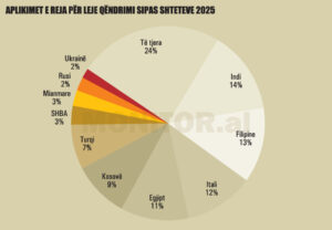 Për herë të parë, në vitin 2025 aplikuan për leje qëndrimi në Shqipëri 2,415 shtetas nga Filipinet. Sipas të dhënave të Regjistrit Elektronik për të Huajt (FER) vënë në dispozicion për “Monitor” nga Policia e Shtetit, shtetasit nga Filipinet që aplikuan për herë të parë për leje qëndrimi përbënë rreth 13% të totalit.