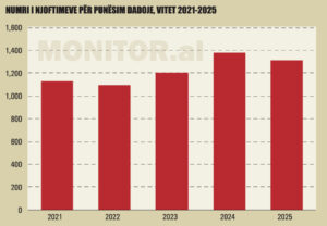 Gjatë vitit 2025, në regjistrin elektronik për të huajt janë përpunuar 19,321 aplikime për leje qëndrimi. Krahasuar me vitin 2024, numri i aplikimeve të reja u rrit me rreth 6,145 aplikime, apo 47% më shumë aplikime se një vit më parë.