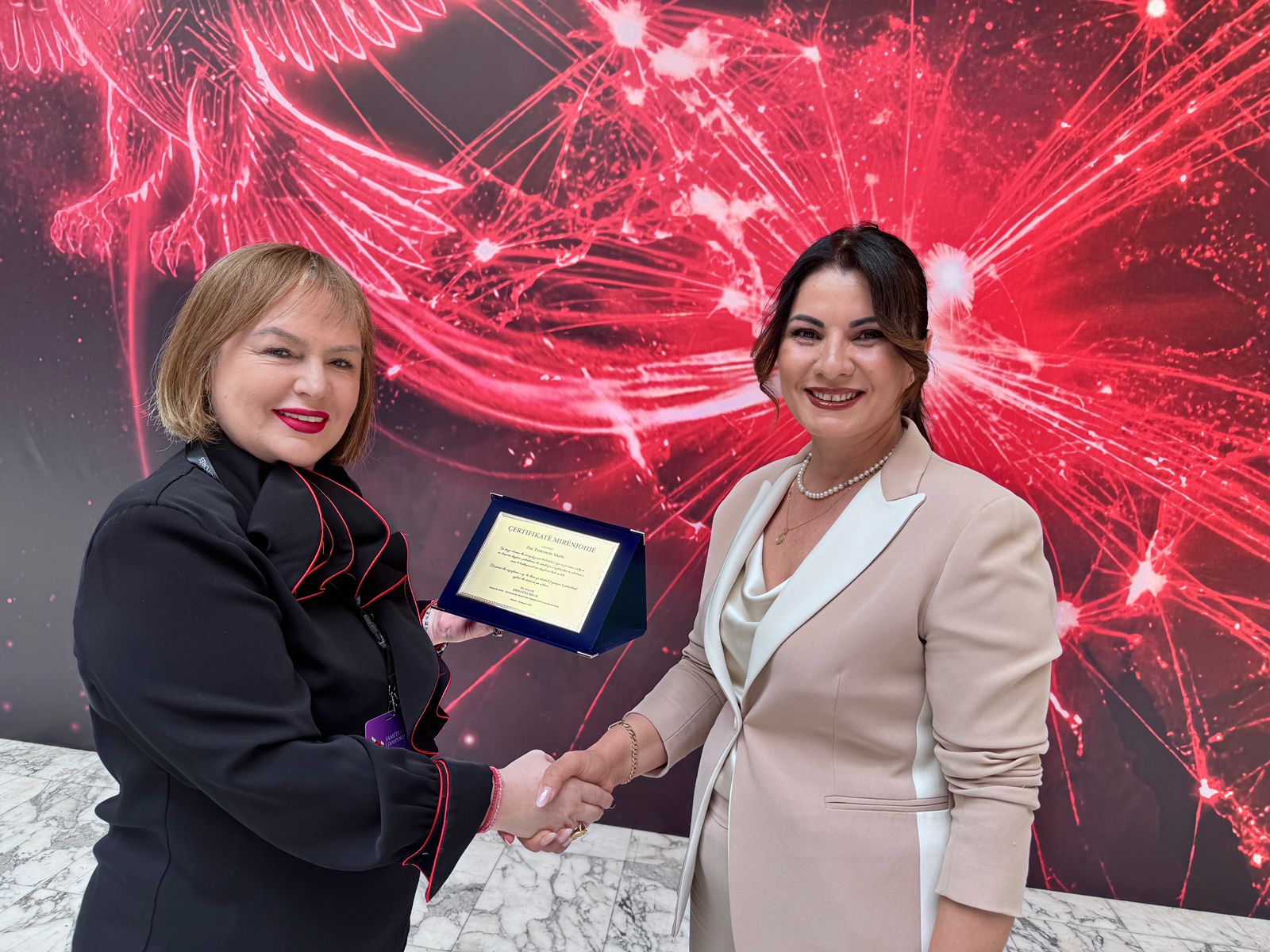 E teksa shteti shqiptar vlerësoi disa prej tyre me çmim, një vlerësim e patën ata vetë, për drejtuesen e institucionit që mban lidhjet me diasporën çdo ditë dhe që ka qenë një ndër organizatoret kryesore të Samitit të Diasporës 2026. Bëhet fjalë për drejtoreshën e Agjencisë Kombëtare të Diasporës, zonjën Ermonela Xhafaj, Cmimi iu akordua nga zonja Eriglena Begaj, presidente e Shoqatës së Kontablistëve Shqiptarë në Itali.