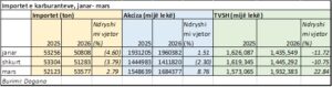 Të dhënat zyrtare të doganave bënë të ditur se importet totale të naftës në muajin mars ishin 53.6 mijë ton, me një rritje të lehtë prej 2.8% në krahasim me të njëjtën periudhë të një viti më parë.